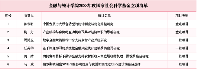 以下为学院获得的2023年国家社会科学基金年度项目名单和2023年度国家自然科学基金资助名单。