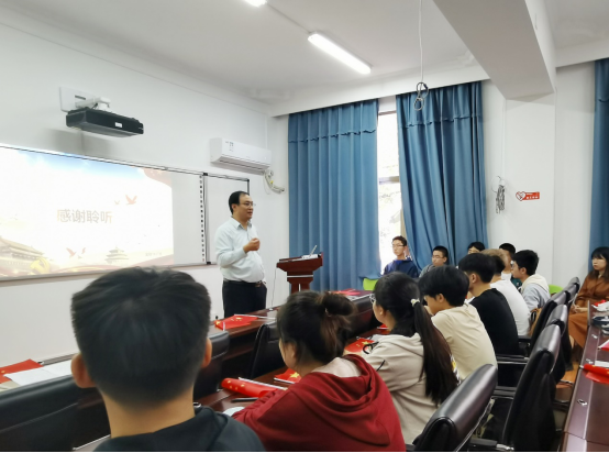 在自由交流环节,颜李逐一为同学们答疑解惑,向大家介绍了关于保研升学、实习、就业等同学们关心的问题,鼓励大家以学业为主,促进自己全面发展。他向同学们表达了热切期盼,提出要将创建成学校优秀班级体作为每位同学奋斗的目标,将小我融入大我,为祖国的建设凝聚磅礴力量,努力成为德智体美劳全面发展的社会主义建设者和可靠接班人。