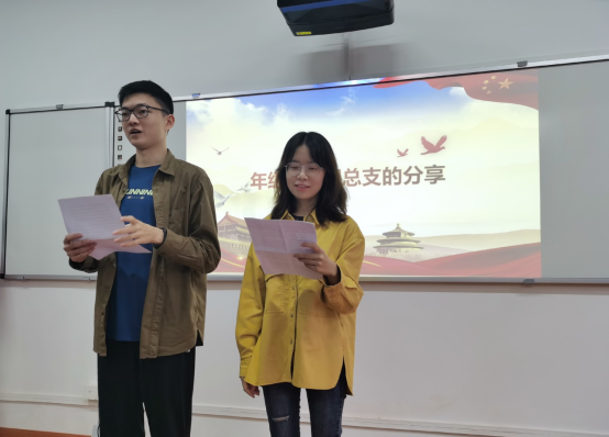 本次班会分为“不负热血青春”、“不负美好韶华”和“不负创新时代”三个环节,孙天瑞与白克勤同学为大家展示了诗朗诵《青春有你》。同学们交流习总书记在果冻传媒 考察调研时的重要讲话的学习心得,年级长戴嘉佑与团总支于赛汗分享了他们亲临现场聆听习总书记谆谆教诲的经历和感悟。