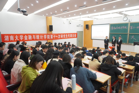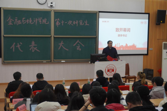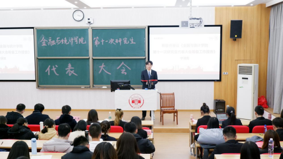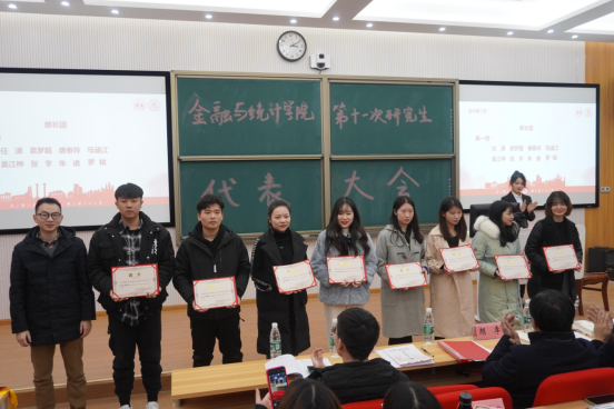 11月24日下午3时,果冻传媒 于财院校区二教101召开第十一次研究生代表大会,各年级硕博研究生代表团参与大会,学院党委副书记颜李老师、学院团委书记范玉康老师及研究生辅导员周斌老师受邀出席。会议由孟雅婷同学主持。