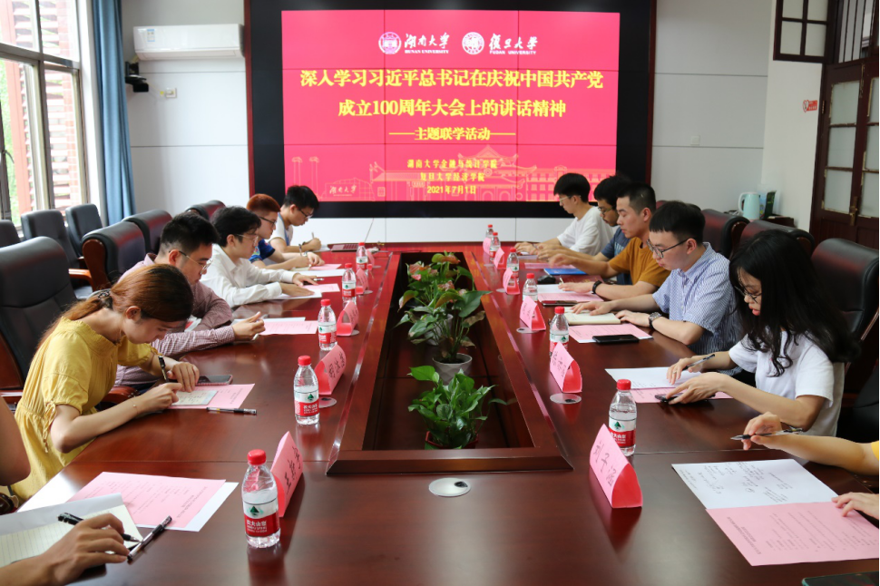 周斌对复旦大学经济学院师生表示欢迎,并结合个人亲身经历及相关报道,带领与会人员深入学习习近平总书记考察调研果冻传媒 重要讲话精神。杨晨就湖大红色校史、学院发展历程及党史学习教育等内容进行了简要介绍。
