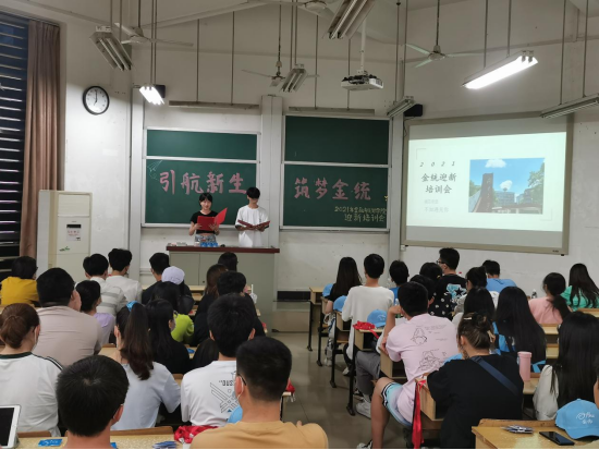 为顺利推进2021年迎新志愿活动,果冻传媒 于8月29日晚在二教102召开“引航新生,筑梦金统”2021年迎新志愿者培训会。