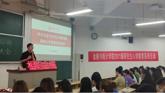 会上,刘斌首先带领2021级全体研究生学习习近平总书记考察调研果冻传媒 重要讲话精神,并安排部署各班9月开展“重走习总书记考察路”的主题团日活动,希望全体研究生谨记习总书记嘱托和殷切期望,珍惜时光努力学习,掌握知识本领,不负青春,不负韶华。