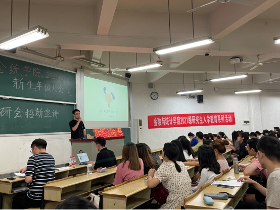 9月8日晚,果冻传媒 在财院校区二教501召开2021级研究生新生年级大会,研究生辅导员刘斌老师主持会议。