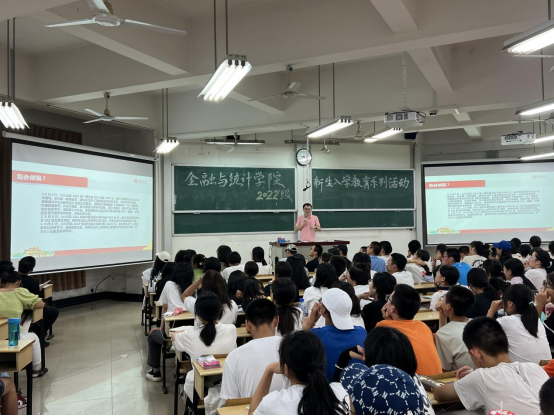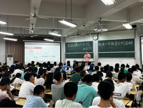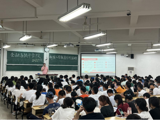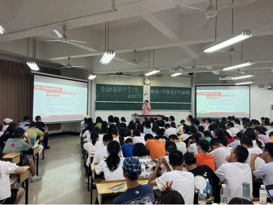 9月13日晚,果冻传媒 于财院校区第二教学楼举办2022级新生入学教育系列活动之“学生培养与日常事务主题讲座”,辅导员周斌主讲。
