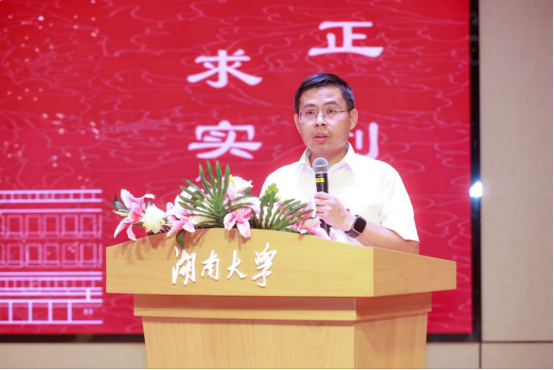 院长王修华以《走进岳麓山,遇见最好的自己》为题寄语新同学,从“大学之大”的三个维度向新同学阐述了如何开启大学生活、实现自我超越。