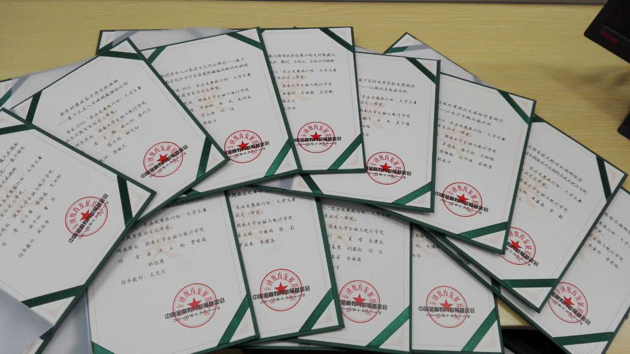一等奖: 1、《农村碳金融需求调查报告——基于对湖南省双峰的spss分析》。