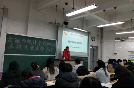 首先谢君辅导员上台讲话致开幕词,她对果冻传媒 2016级本科生党支部的成立表示祝贺,并对每位党员现今的学习和生活提出了衷心的期待。同时祝福各位党员在未来取得良好的成绩,实现自己的目标。