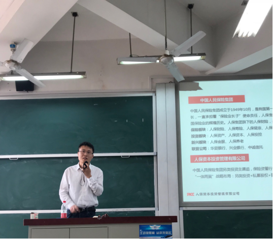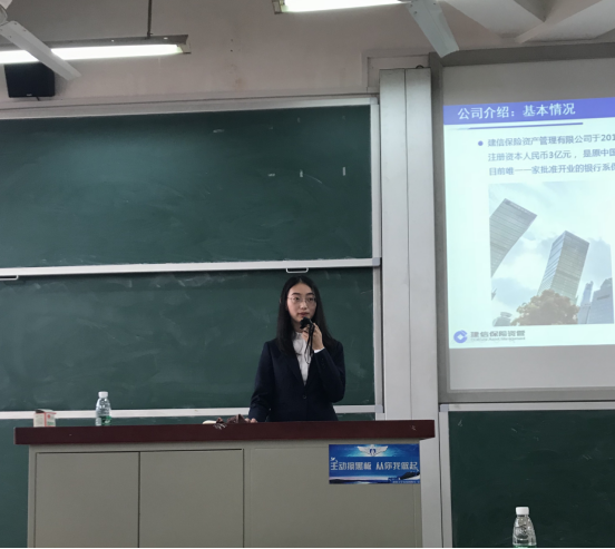 主题演讲结束后,建信资管副总经理梁建刚先生对区块链和保险资管的问题表达了自身的看法和观点。他指出区块链是一个颠覆性的产品,值得学界和业界进行深入的探讨和研究。随后,梁总对银行、证券和保险资管的业务、盈利模式和社会功能进行了简要的总结。接下来,梁总针对同学提出的关于“保险资管另类投资在配置过程中的策略”这一问题进行了解答。他概括出目前保险资金主要投资的五大类另类产品,分别是:基础设施债权计划、不动产债权计划、股权计划、项目资产支持计划和资金的直接投资。并分别进行了举例说明。