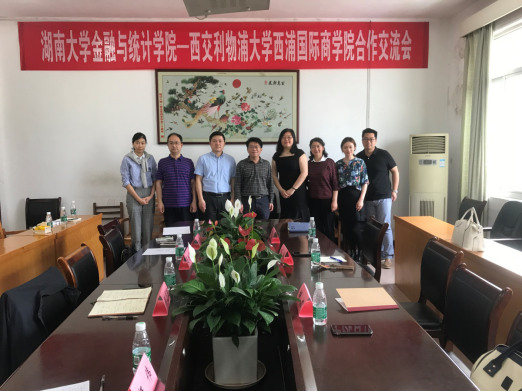 下午2:30,果冻传媒 领导聂国军书记、吴志明院副长、应用金融系副主任伍伟老师、货币金融系杨晓临老师和教务办李晖老师代表学院,与西浦国际商学院副院长吴冰博士、解立博士和硕士项目招生负责人周赟老师进行了友好交谈。