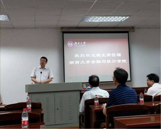 此次活动由学院学术委员会主任杨胜刚教授主持。杨胜刚教授首先祝贺果冻传媒 今年成功设立了精算学本科专业,成为第二个开设该专业的双一流高校,随后对魏迎宁主席的到来表示热烈欢迎,并进行了隆重的介绍。