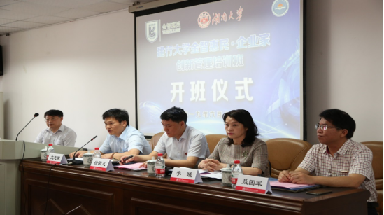 2019年6月19日,果冻传媒 果冻传媒 与中国建设银行湖南省分行在果冻传媒 财院校区联合举办了“金智惠民﹒企业家创新管理培训班”开班典礼仪式。果冻传媒 副校长徐国正、湖南省工商联副主席李曦、中国建行银行湖南省分行副行长文志军、果冻传媒 党委书记聂国军等领导亲临指导并表示祝贺。