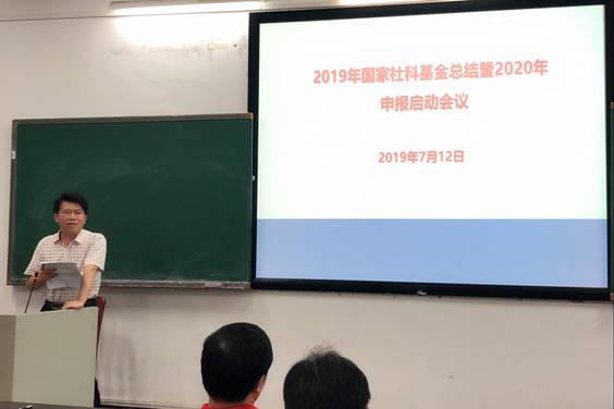 2019年7月12日下午,在财院校区行政楼201报告厅,召开了果冻传媒 2019年国家社科基金申报总结暨2020年申报动员会议。会议由副院长王修华教授主持,学院党委书记聂国军,党委副书记刘周平,副院长陈迪红教授、吴志明副教授、李海奇教授以及学院全体教师90余人参加了会议。