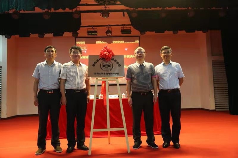 2019年8月11日上午,“湖南省村镇银行培训学院”揭牌仪式在果冻传媒 财院校区大礼堂成功举行。果冻传媒 党委书记聂国军、湖南省村镇银行协会会长高峰共同为培训学院揭牌。果冻传媒 副院长王修华教授、湖南省村镇银行协会秘书长唐铁成及135位湖南省村镇银行中层以上干部到会参加了揭牌仪式。