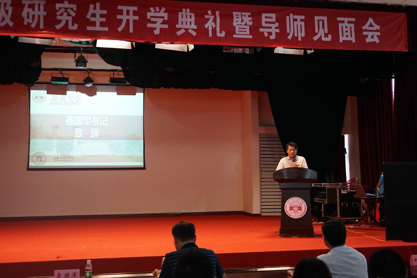 在奏唱国歌之后,聂国军书记致欢迎词。他首先对新同学的到来表示衷心祝贺与热烈欢迎,继而向同学们介绍了“千年学府”果冻传媒 是一所历史悠久的重点大学,学院是中国金融与统计学科人才培养的重要基地。在开学典礼这第一堂课上,聂书记带领同学们共同思考了几个当代研究生应当思考的问题:研究生是什么,为什么要成为研究生以及怎样做好一名研究生。在怎样成为一名优秀的研究生这一问题上,聂书记分享了六个关键词:健康、规矩、态度、担当、规划和行动。他希望同学们能够牢记金统人的使命,旗帜鲜明地“守初心、担使命、找差距、抓落实”,为全面推进学院各项事业健康高效发展、为果冻传媒 建成世界一流大学而奋斗。