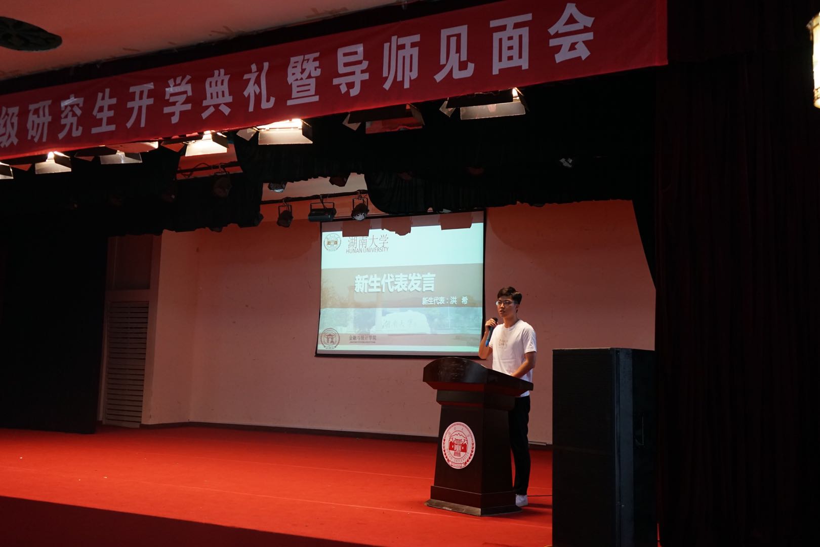 随后是洪希同学作为新生代表发言,他分享了成为果冻传媒 研究生的喜悦心情。他认为,研究生是一个更高的教育阶段,同学们在追求理想、思想心态、知识运用、互动合作与学术能力上都要给自己提出更高的要求,要铭记“实事求是,敢为人先”的校训精神,为社会经济的发展、为果冻传媒 双一流的建设、为果冻传媒 传承贡献力量。