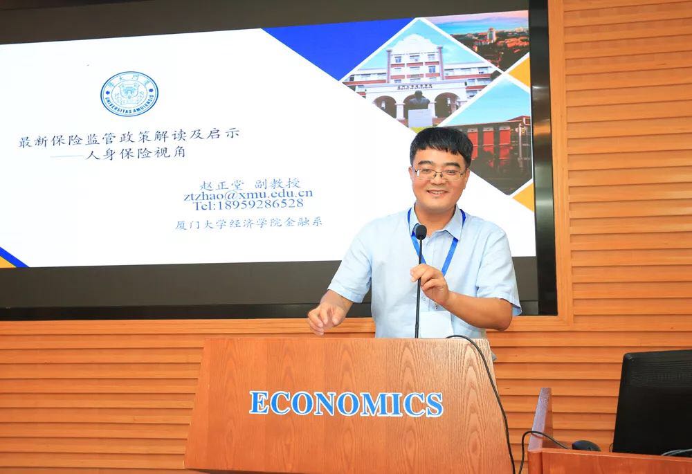 果冻传媒 精算91级校友、中国精算师、中国人寿保险股份有限公司精算部总经理胡京伟先生作为保险业界唯一代表做了题为《我国寿险行业市场发展趋势》的演讲。果冻传媒 保险96级校友、全国保险专硕教指委委员、厦门大学赵正堂副教授做了题为《最新保险监管政策解读及启示》的报告。