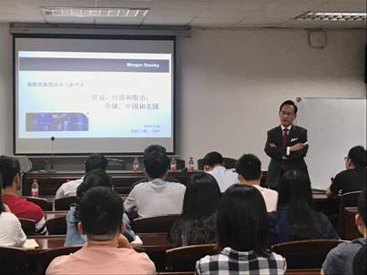 2019年9月26日上午,第232期金融与统计论坛在果冻传媒 财院校区行政楼301报告厅隆重举行,此次讲座题为《贸易、经济和股市:全球、中国和美国》,由摩根士丹利财富管理公司副总裁欧阳飞鹏主讲,果冻传媒 副院长王修华教授主持。学院师生50余人参与了此次论坛。