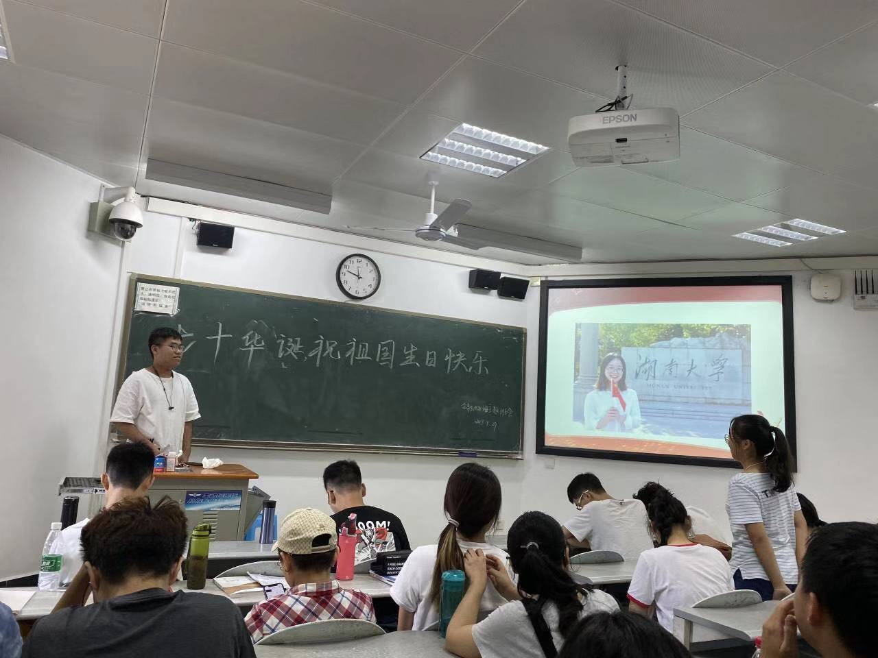 9月27日(星期五),金融1808班在果冻传媒 财院校区水教305组织举办了庆祝中华人民共和国成立七十周年主题班会。整场班会均以新中国七十周年华诞为主题,围绕祖国的发展繁荣进行了分享与探讨。