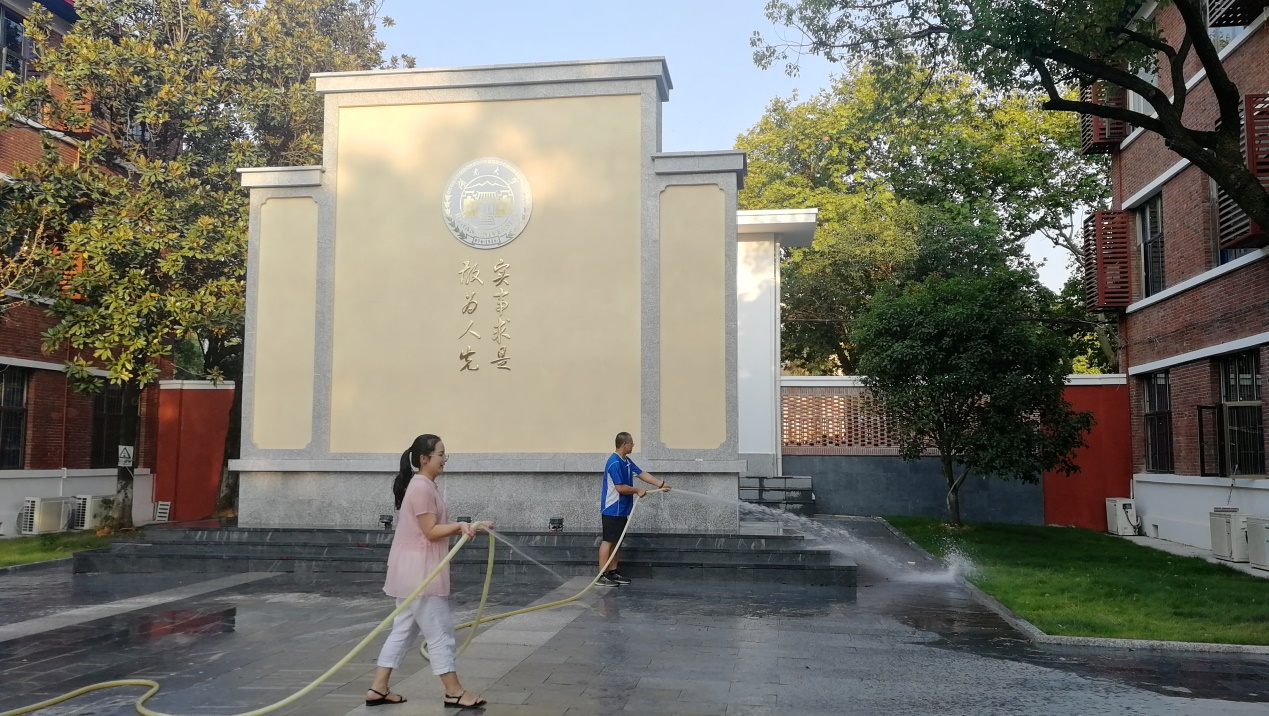 全体党员在炎炎烈日下,有的扫把清理落叶,有的铲垃圾,还有的搬运垃圾。每个人的脸上都挂满汗水,但大家热情不减,干劲十足,精细劳作。在清扫完园区的落叶之后,在攻坚不好清理的死角,大家不怕脏、不怕累,弯腰用手捡,展现了党员干部良好的精神风貌。