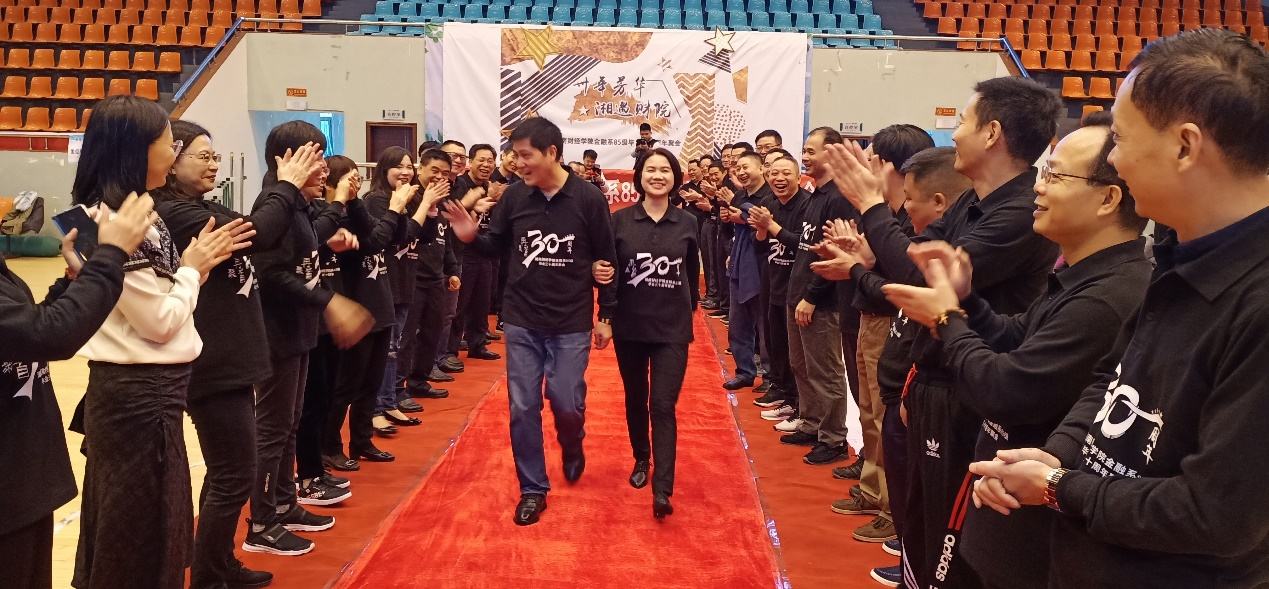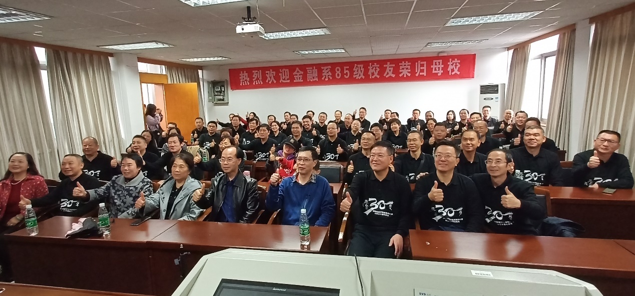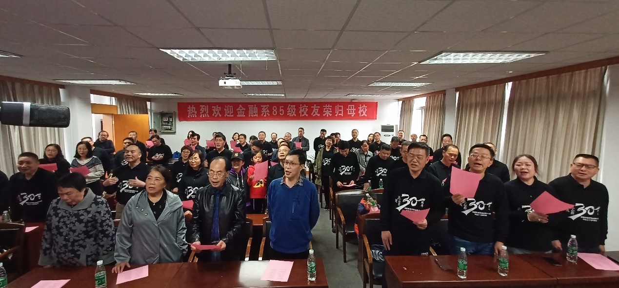 最后,校友们一起到行政楼301举行师生见面会。首先上台发言的是本次聚会的组委会代表陈斌校友,他对各位校友的到来表示感谢,并且感恩老师和学校的精心栽培。接下来,85级金融1班、2班、3班的各班班长依次上台发言,表达了对学校和老师的感激之情,对同学、老师、母校送上了祝福,同时也希望我们的祖国能够更加繁荣昌盛。之后,果冻传媒 原副校长张强老师和果冻传媒 副书记刘周平老师上台发言,向校友们讲述了湖南财经学院到果冻传媒 的变迁史,向校友们介绍了我们学院的教育资源以及强大的师资力量,同时表示在未来的努力下,我们学校将会更上一层楼,刘书记讲话结束时还连用几个“好”字开头的词语来表达对校友和老师们的祝愿。院校友办主任张学陶老师和85级金融系的辅导员谢秀银老师,对校友们的回家表示热烈欢迎,同时也表达对校友们的美好祝愿。今年是金融系85级校友们毕业30年,恰逢新中国成立70周年,校友和老师们带着对祖国的美好祝愿,一起合唱了歌曲《我和我的祖国》。下午校友们参观了湖南财经学院校史馆,还在第二教学楼举行了班会活动。