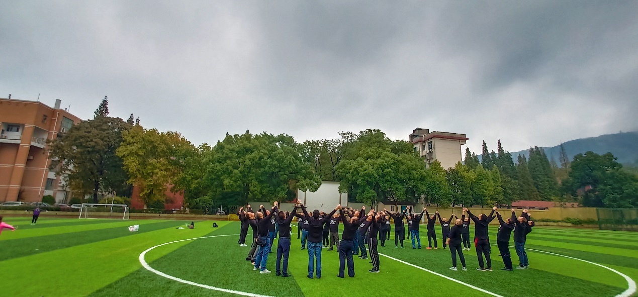 随后,校友们来到足球场进行航拍录像。校友们在足球场的中圈摆出数字“85”和“30”,代表着金融系85级的学生毕业30年后再次回到母校相聚。