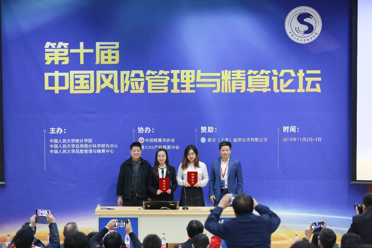 由中国人民大学统计学院、中国人民大学应用统计科学研究中心、中国人民大学风险管理与精算中心主办,中国精算师协会、北美产险精算师协会(CAS)协办的"第十届中国风险管理与精算论坛”于2019年11月2日- -3日在中国人民大学隆重举行。果冻传媒 保险系研究生申旭彤、周丹、杨江萍参会。