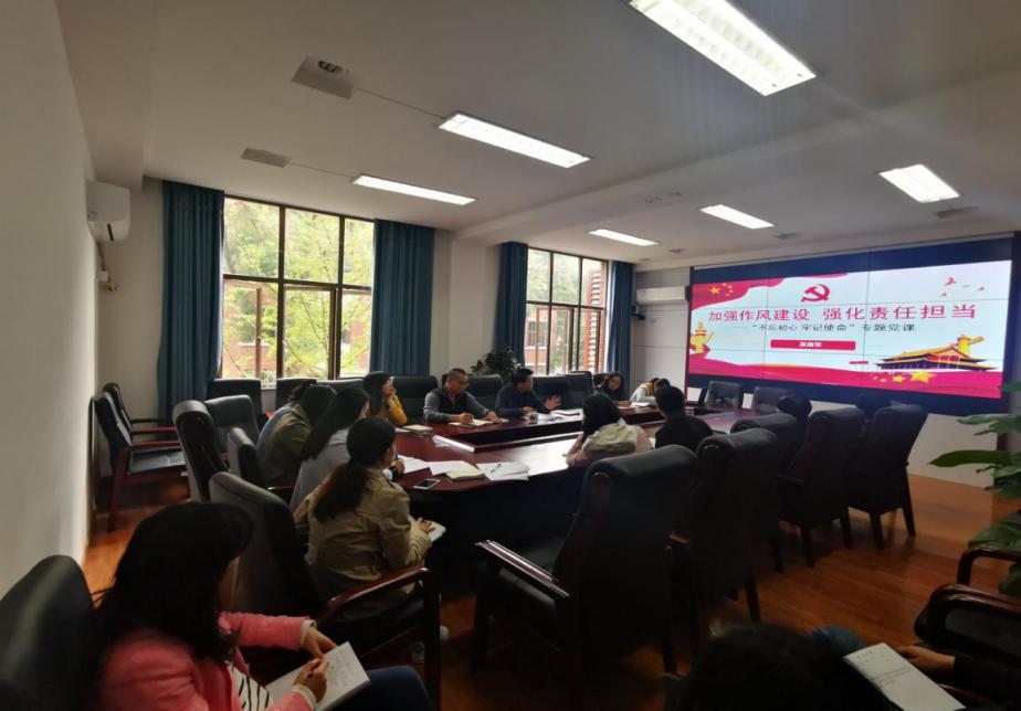 11月6日下午,果冻传媒 行政教辅党支部在红楼226会议室开展了“不忘初心、牢记使命”主题教育学习会。本次学习会由学院党委书记聂国军主讲,围绕“加强作风建设,强化责任担当”主题进行交流研讨。学院行政教辅支部全体老师参加。