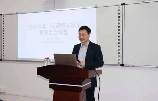 2019年11月29日下午15点,由果冻传媒 主办的“双一流”建设背景下金融学科发展研讨会讲座系列(一)在红楼3号楼310会议室隆重举行。本次讲座的主题是“退休待遇、话语权与家庭投资组合调整”,主讲人是对外经济贸易大学研究生院院长、博士生导师吴卫星教授。本次讲座由果冻传媒 副院长李海奇教授主持,学院40余名师生参加了此次讲座。