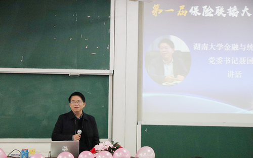 比赛伊始,果冻传媒 党委书记聂国军发表讲话。聂国军书记对我国保险业的发展前景充满信心,他的一句“我爱保险专业”赢得了满堂喝彩!聂书记对在座2018级金融专业的全体同学寄予厚望,指出保险未来的发展要依靠同学们,保险业将大有可为,并对此次保险联播大赛的积极影响给予充分肯定。