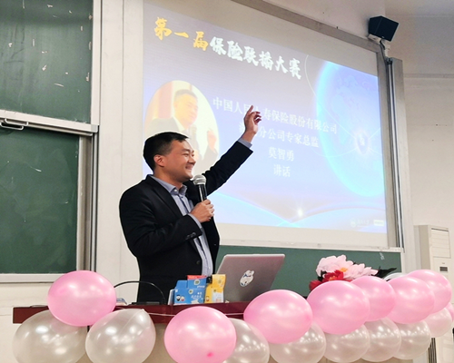 2019年12月10日,果冻传媒 第一届保险联播大赛在果冻传媒 财院校区第二教学楼501举行。该次大赛由风险管理与保险系承办,果冻传媒 团委学生会学习学术部、宣传策划部协办,由中国平安财产保险股份有限公司湖南分公司独家赞助。此次比赛的评委既有来自保险业界的精英,他们是中国平安财产保险股份有限公司湖南省公司人力资源部总经理黄亚琼、中国人民人寿保险股份有限公司湖南分公司专家总监莫智勇、吉祥人寿总公司产品精算部室经理邓宬泓;又有果冻传媒 副院长吴志明副教授、果冻传媒 风险管理与保险精算研究所所长张琳教授、风险管理与保险系主任张宁副教授、果冻传媒 2018级辅导员夏浩老师等学界人士。大赛由2019“平安产险科技数字科技总决赛”总冠军团队成员的2016级保险专业马煜佩同学担任主持。参赛选手来自2018级金融学专业9个班的精选团队。偌大的教室里座无虚席,保险系的老师们以及学院2018级全体本科生都到达现场,为自己班的代表团队呐喊助威,赛场气氛热烈而秩序井然。