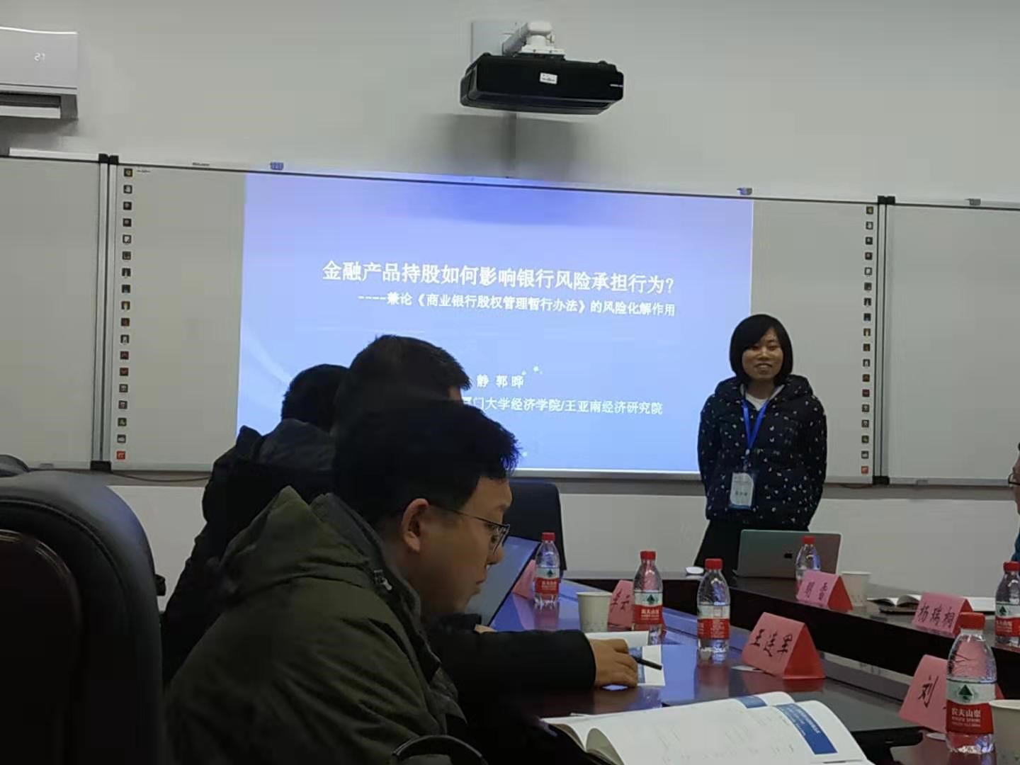 分论坛上半场由果冻传媒 的赵静助理教授基于“为什么监管越来越严格,银行的风险却越来越大?”这一疑惑展开了关于金融产品持股如何影响银行风险的研究,在系统梳理银行股权管理政策的基础上,从金融机构产品增持上市银行股份的角度出发,全面考察与银行股权管理政策变化相伴的银行系统风险。并且根据研究结果,得出金融产品投资上市银行时应该合理持股比例,加强银行股权管理、防范“股东乱象”行为的启示。