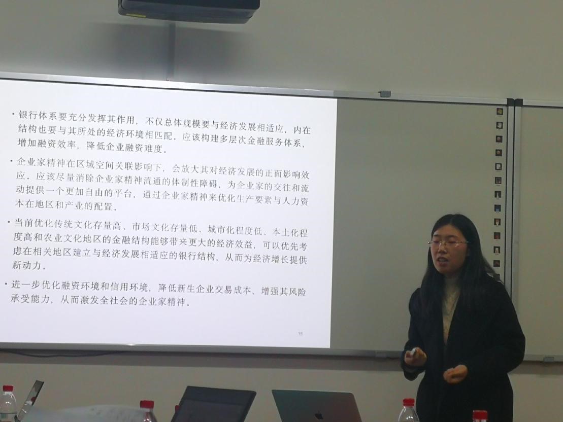 中南财经政法大学的杨瑞桐博士从该论文在空间关联视角下探讨了银行业市场结构对于企业家精神的影响,表明银行体系内在结构要与所处的经济环境相匹配;企业家精神在区域空间关联影响下,会放大对经济的正向影响作用,进一步优化融资和信用环境,降低新生企业交易成本有助于激发企业家精神。
