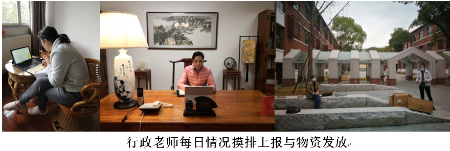 从《春季开学工作方案》的制定、《关于疫情防控期间教职工上班的有关事项的通知》发布;到疫情防控联络员每天对教职员工、退休老干的疫情排查与两次情况上报;疫情防控物资的采买与发放;办公场所的消毒与出入管理等工作,学院行政老师同样奋战在“抗疫”一线,丝毫未有松懈 。