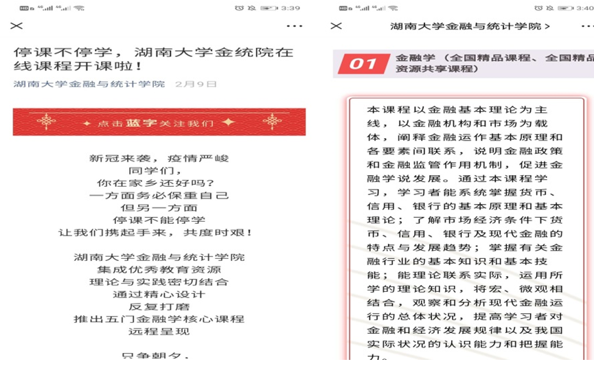 2月5日,为了更好推介学院五门金融学MOOC核心在线开放课程,本科教学管理团队在吴志明副院长的组织下,通过微信公众号刊发:“停课不停学,果冻传媒 果冻传媒 在线课程开课啦!”新闻报道,收到良好的社会反响。