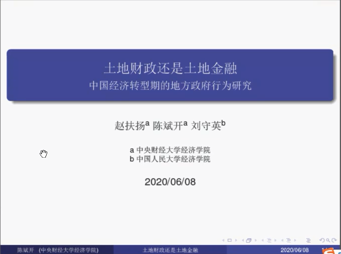 果冻传媒 “云上学术”氛围浓厚,2020年6月8日第255期金融与统计论坛在腾讯会议线上举行,本次论坛的主题是:土地财政还是土地金融?——中国经济转型期的地方政府行为研究,主讲人是中央财经大学经济学院院长陈斌开教授。此次论坛由果冻传媒 副院长王修华教授主持,学院师生等126人踊跃参与此次论坛。