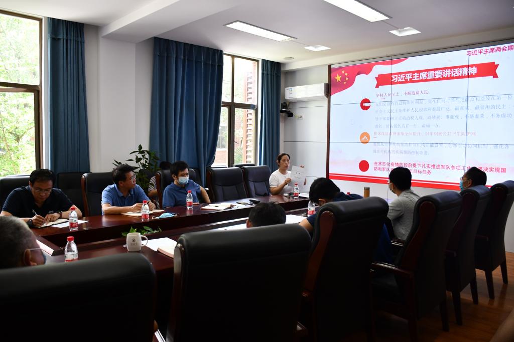 院党委书记聂国军强调,学习贯彻落实“两会”精神是当前一项重要政治任务,一是要学深悟透真学真用,把学习宣传贯彻十三届全国人大三次会议精神与疫情防控和学院各项工作相结合,一体学习、一体贯彻;二是要把学习两会精神成效转化为思想和行动自觉,落实好特殊时期的“六稳”与“六保”,要统一思想、高度重视并推动毕业生就业指导工作。三是在疫情防控常态化要求下,统筹抓好疫情防控和教学科研工作,紧盯线上教学质量不放松,进一步落实立德树人根本任务,切实把“两会”关于高等教育的要求融入到教书育人实践中去。