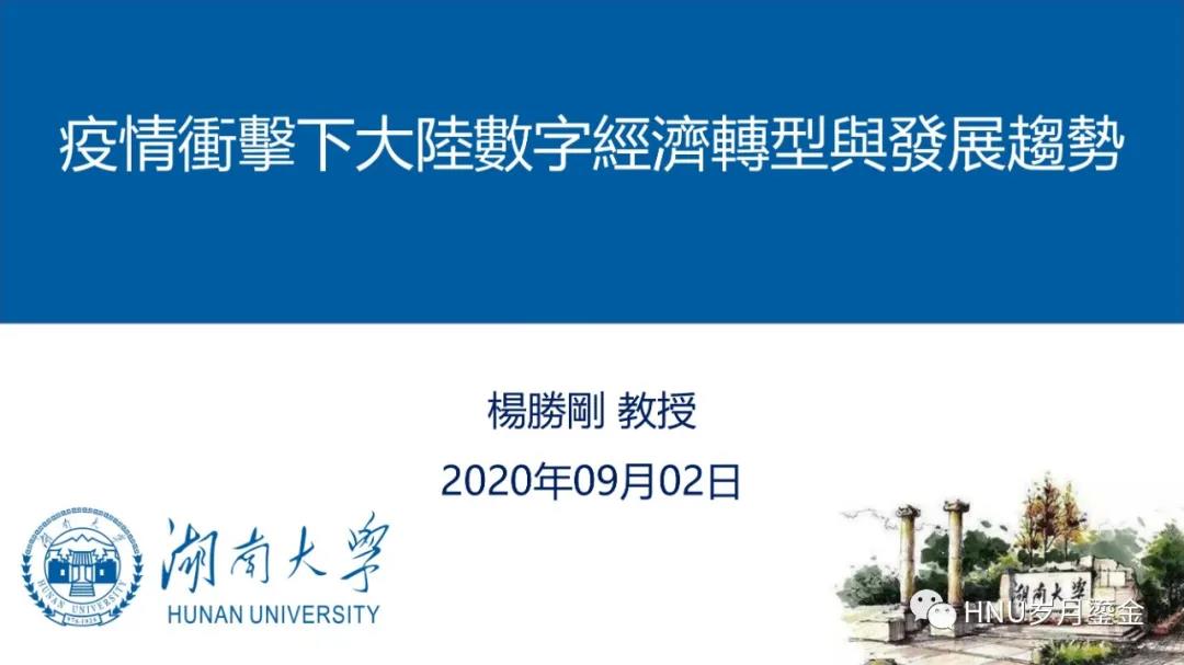 作为大会共同主席的果冻传媒 金融发展与信用管理研究中心主任兼首席专家杨胜刚教授,作为主讲嘉宾,做了题为《疫情冲击下的大陆数字经济转型与发展趋势》的主题演讲。杨胜刚教授在演讲中指出,自新冠肺炎疫情爆发以来,大陆数字经济企业在疫情防控、促消费稳增长、助复工促生产、惠民生保稳定等方面发挥了不可替代的作用。此次疫情对大陆数字经济发展也是一次深刻检验,加快了经济社会各领域数字化转型进程。但也暴露出传统产业数字化基础薄弱、与实体经济融合不好、数据开放共享水平不高、智慧社会建设跟不上社会治理需求等“短板”。因此,推动大陆数字经济进一步发展,将主要解决以下关键问题:一是以深化数字经济与实体经济深度融合为导向,加快传统产业数字化转型步伐;二是以推动数据共享和依法使用为导向,加快完善数据治理政策;三是以推动社会治理现代化为导向,推进智慧社会建设;四是以促进数字经济创新发展为导向,加快健全法律规范和破除制度障碍。