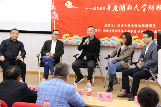 接下来是“饮水思源话初心.财经黄埔续辉煌”校友论坛环节,曾志峰先生、黄炜先生、熊燕先生、谢凌宇女士和戴斌先生与同学们分享了各自的工作经历和宝贵经验。最后,他们表示“资本的春天来了,最灿烂的阳光照在你们身上”“大家要多关注科技领域,掌握新知识”……以此激励同学们走向宽广的人生道路。