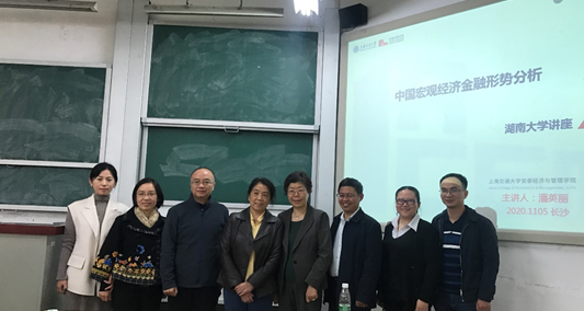 潘教授首先从对宏观经济形势的全面描绘及细致深刻分析,为到会的全体老师和学生带来了精彩的学术分享。在讲座结束后,同学们报以最热烈的掌声来感谢此次潘教授的宝贵分享。会后,潘教授与果冻传媒 老师合影留念。