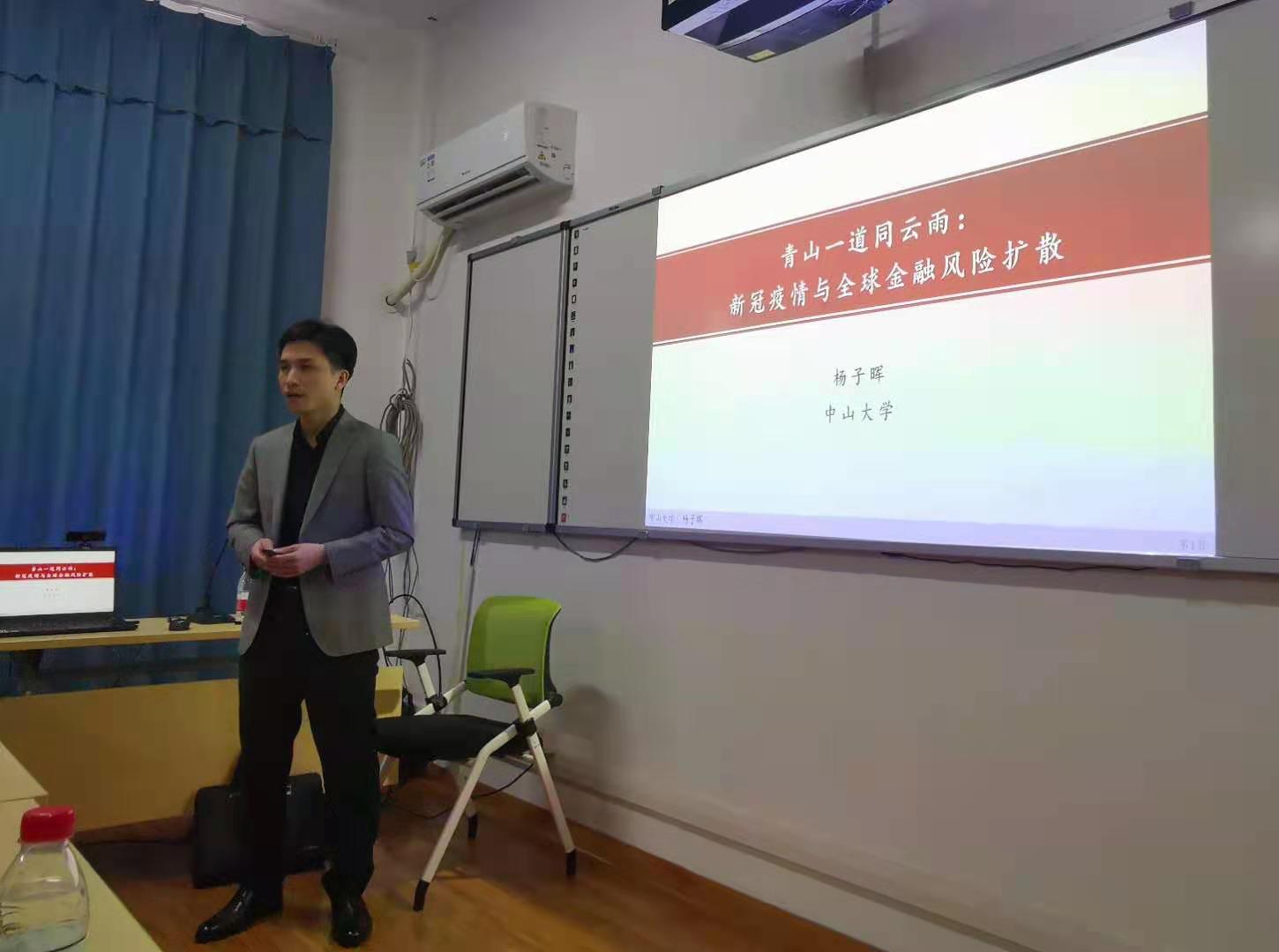 2021年3月26日下午,中山大学岭南学院杨子晖教授应邀来访果冻传媒 ,并做题为“青山一道同云雨:新冠疫情与全球金融风险扩散”的学术讲座。讲座由果冻传媒 马理教授主持,喻旭兰教授、梁巨方副教授、明雷副教授、赵静助理教授、赵丽娟助理教授、岳崴助理教授,以及部分博士生和硕士生参加了此次讲座,现场座无虚席,讲座受到了同学们的热烈关注与积极响应。