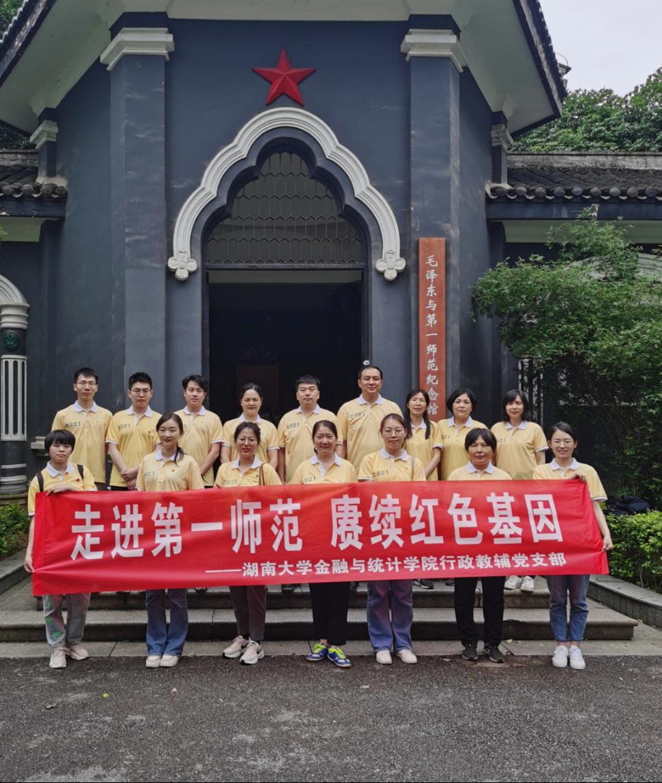 行政教辅党支部联合交通银行麓谷科技支行党支部,赴湖南省立第一师范学校开展“走进第一师范 赓续红色基因”党史学习教育联合党日活动,旨在引导广大教师党员深入了解青年毛泽东在长沙的重要历史足迹,更好地传承和弘扬 “传道济民、经世致用”的优良传统。