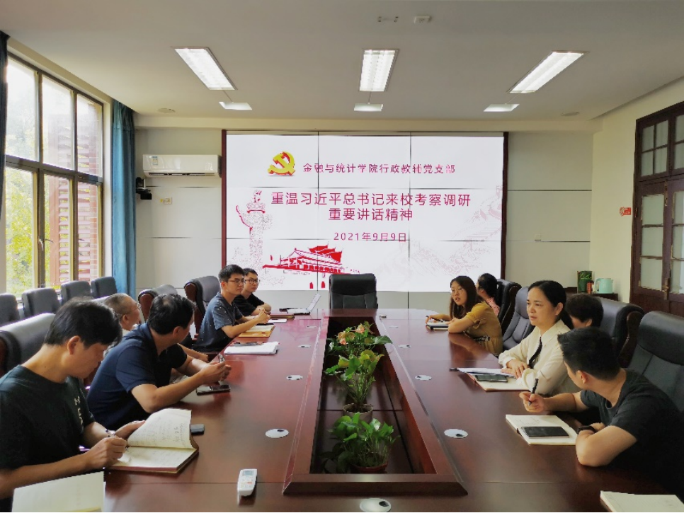 9月9日下午,果冻传媒 行政教辅党支部在院楼226会议室开展“牢记嘱托,矢志一流”主题党日活动,重温习近平总书记来校考察调研重要讲话精神。会议由支部书记谢君主持。