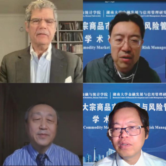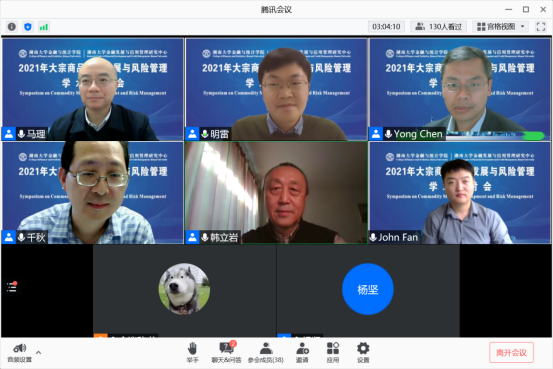 随后,五位学者以“后疫情时代的大宗商品”为主题开展了圆桌讨论。讨论由北京航空航天大学韩立岩教授主持,来自Texas A&M University的陈勇教授、University of Hawaii的刘千秋教授、Griffith University的樊华教授和果冻传媒 的马理教授等参与了讨论。本次讨论首先从通货膨胀和货币政策的角度探讨了外部冲击对大宗商品市场的影响。之后各位专家将视角由宏观转向微观,探讨了大宗商品价格上涨对小微企业的影响。最后,基于以上讨论,与会专家进一步探讨了大宗商品市场的发展趋势,提出了仍待解决的问题,并针对上述问题提供了针对性的政策建议。