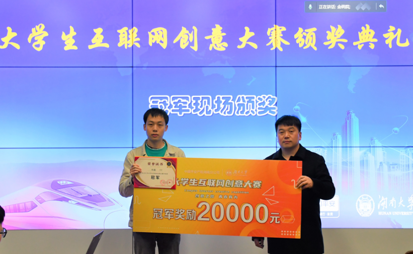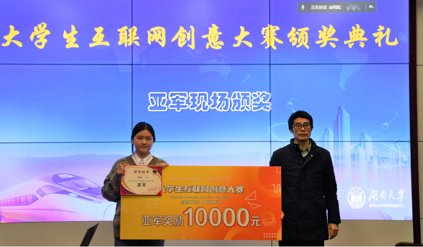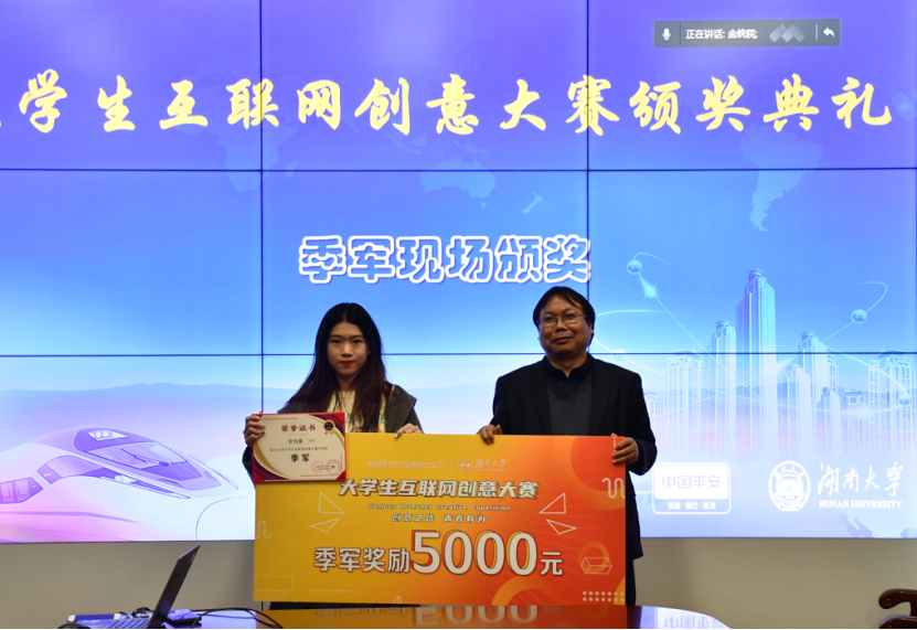 经验分享环节,季军团队获奖代表、新闻与传播学院甘钰童分享获奖感言,“这一程大赛的旅途走过春夏,在秋冬收获,在比赛的过程中,我们全情投入,做到我们所能做到的最好。感谢平安对我们参赛方案的支持与帮助,感恩遇见的每一个人。“亚军团队获奖代表、工商管理学院黄敏提到,”这次比赛经历让我们体会了在一个大型平台上进行活动策划、活动运营,是一个怎样的状态,以及会遇到哪些问题、遇到问题又该如何调整。这对于我们团队成员未来的求学、求职都有着非常大的帮助。希望未来有机会能够参与到更多类似的优秀的活动当中。”冠军团队获奖代表、大赛MVP获奖者、果冻传媒 田醴涵感叹拿到大赛的冠军来之不易;感谢果冻传媒 和平安产险湖南分公司,给了我们湖大的学生一个很好的平台,让我们能够参与到大型公司真正的运营项目中去;感谢作品指导老师罗鹏老师以及赛方老师、平安公司的工作人员,得益于他们很多实质性的建议,将我们不太成熟的方案在很多细节方面进行完善;感谢团队成员们,在竞赛期间齐心协力,精益求精,才有了今天完美的结果。