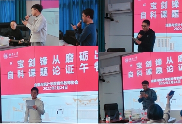 2022年2月24日中午,果冻传媒 “宝剑锋从磨砺出”自科课题论证午餐会在学院2号楼拉开序幕。学院副院长王修华教授首先对本次国自科课题的申报工作进行了阶段性总结,并对目前申报中存在的共性问题进行了解答。王院长表示,在2022年度国自科项目申请的最后冲刺时间里,希望老师们务必抓紧每分每秒,不断地修改和完善标书,并预祝学院老师们申请成功。同时,王院长对新成立的青年教师协会再次表示祝贺,期待协会为青年教师们举办更多有价值的学术活动。