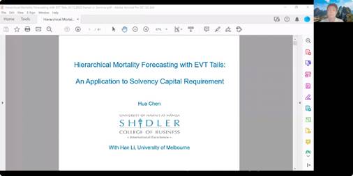 5月12日上午,由果冻传媒 主办的第343期金融与统计论坛在线上腾讯会议顺利举办。本次讲座由果冻传媒 副院长张宁教授主持,邀请来自美国夏威夷大学马诺阿分校的陈铧教授做题为《死亡率预测与准备金充足率研究》的学术讲座。保险精算系毕达宁老师、何玲瑀老师等50余名师生积极参加了此次讲座。