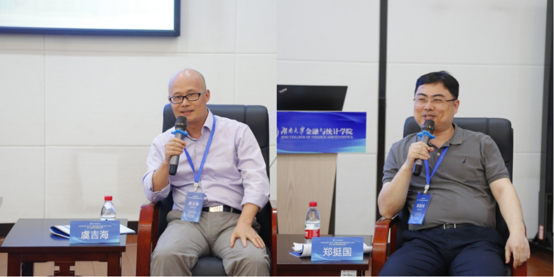 中国科学院大学洪永淼教授(左一) 中央财经大学姜富伟教授(右一)