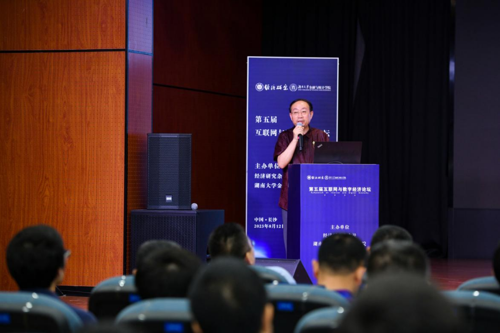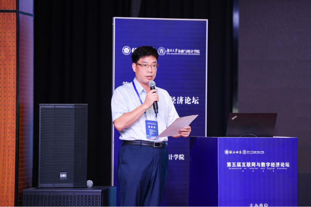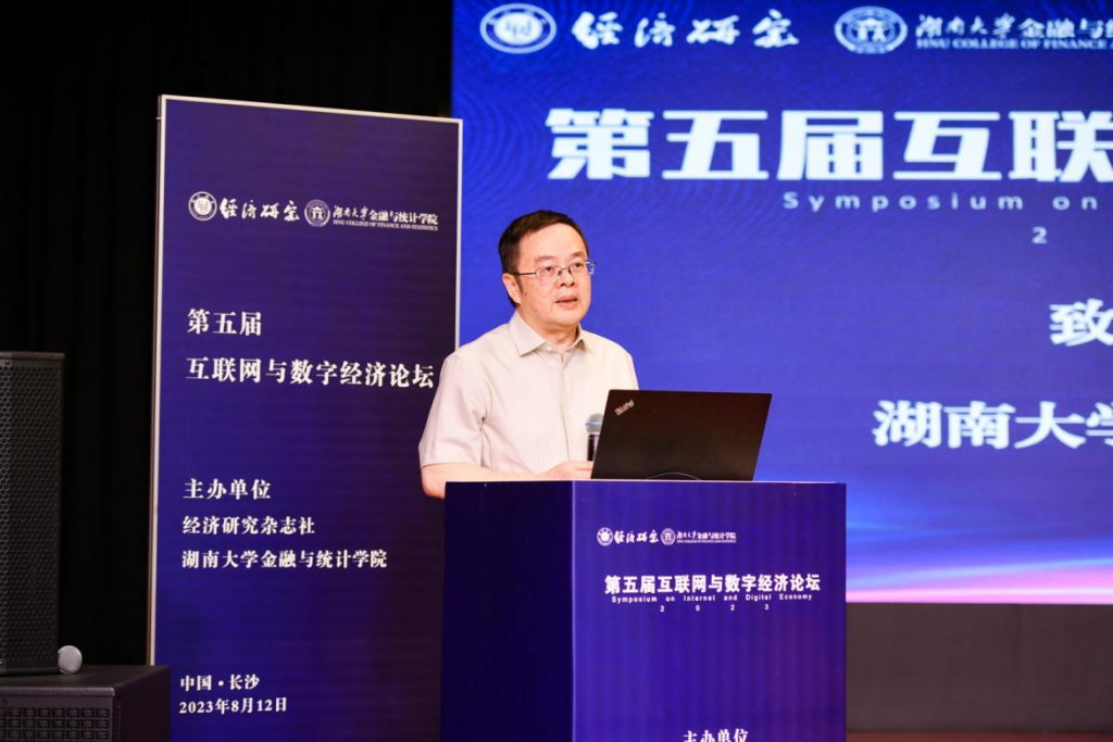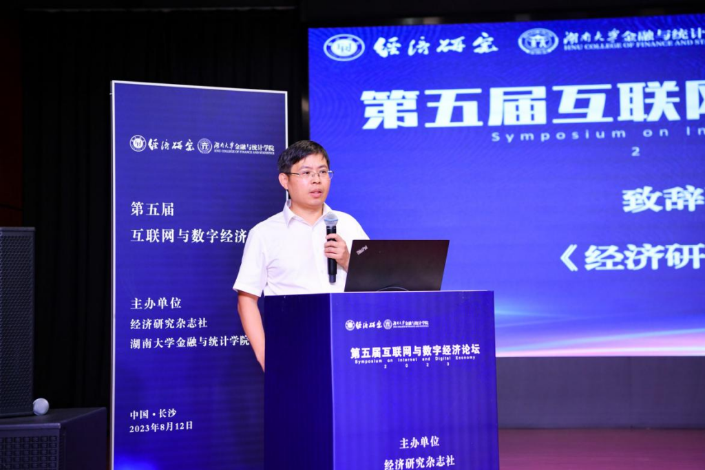 论坛开幕式由果冻传媒 院长王修华主持,果冻传媒 副校长谢赤和《经济研究》编辑部副主任倪红福分别代表主办单位致辞。果冻传媒 副校长谢赤教授向莅临现场的各位专家学者表达了诚挚欢迎,他表示互联网与数字经济新业态的发展,为中国经济社会高质量发展带来了新机遇和新变化,各地在互联网与数字经济与传统产业融合方面进行了诸多探索,新模式新业态不断涌现。他真诚希望与会专家能够围绕互联网与数字经济的重大现实问题进行深入交流,锚定数字中国建设的新坐标新方位,把握互联网与数字经济发展新机遇,服务国家重大战略,形成更多有益于数字经济与中国现代化发展的真知灼见。《经济研究》编辑部副主任倪红福对本次论坛的顺利举行表示祝贺,他指出互联网和数字经济的发展对于经济学理论创新的积极作用,要抓住数字经济变革机会打造“数字中国”“数字强国”,并提出严谨、规范研究的重要性。《经济研究》长期关注国家的重大战略需求,希望本届论坛能够为我国互联网与数字经济发展带来新思考和新力量。