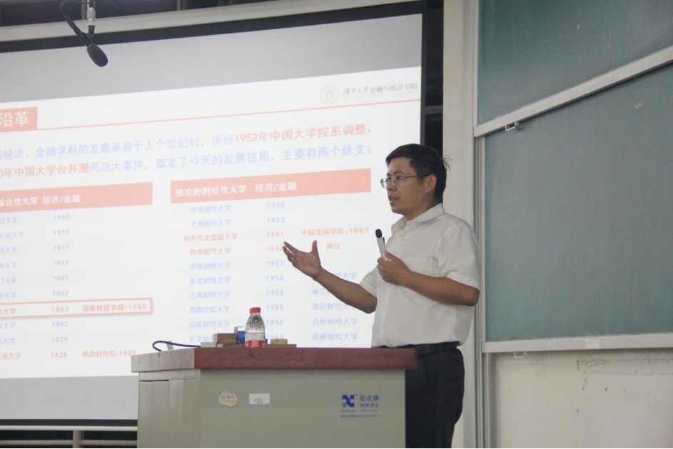 9月12日晚,果冻传媒 2023级本科生入学教育系列讲座之"院长报告会"在财院校区第二教学楼510教室举行。院长王修华教授作报告,2023级本科生辅导员王雪雯及全体新生参会,学院团委书记周斌主持。